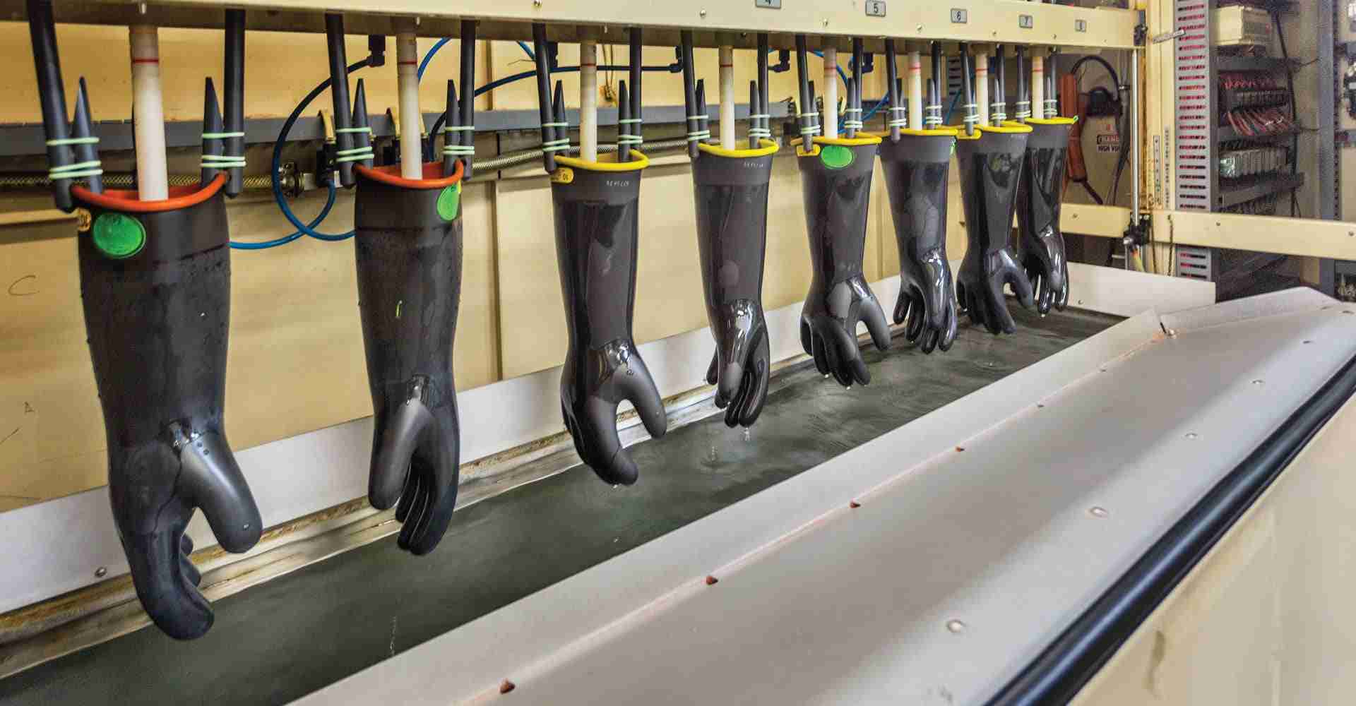 At the K‑Line Lab, a thorough two stage cleaning and disinfecting process involving a preliminary manual clean followed by a mechanical disinfection is followed to ensure rubber protective items are properly treated. Such a comprehensive process coupled with the use of environmentally friendly cleaners extends the life of the product.